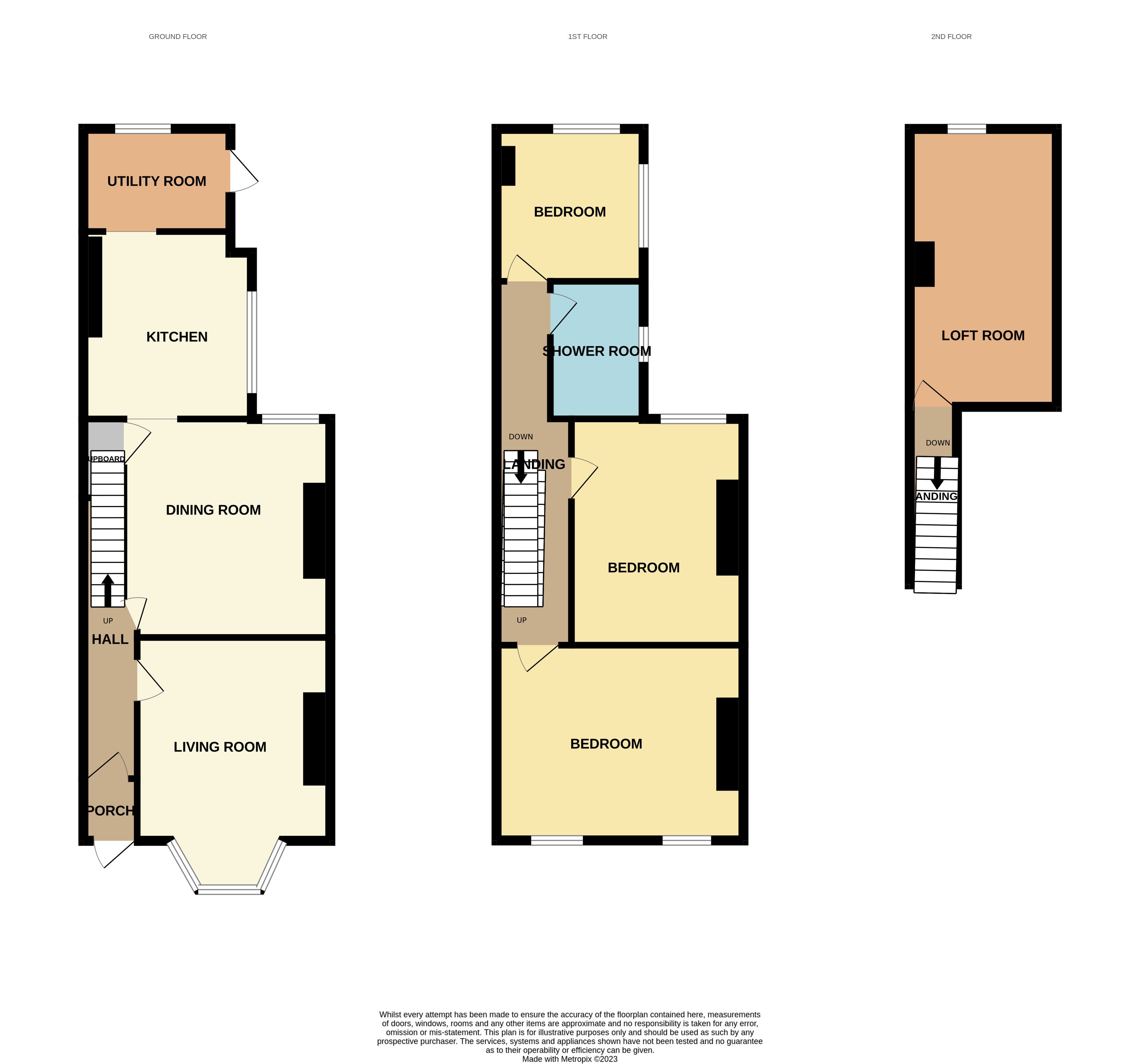 The accommodation comprises an entrance vestibule with a period ornate tiled floor, entrance hall, bay fronted living room, dining room giving access to the rear kitchen, with a utility room and WC at the rear. At first floor, there is a landing giving access to three double bedrooms and a shower room. There is a further good sized attic room accessed via stairs from the first floor landing.