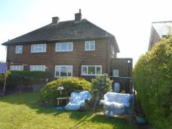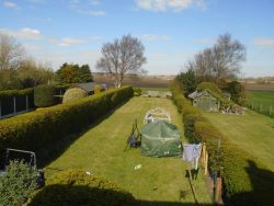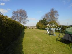 Driveway and garden at the front and relatively large garden at the rear, with views over open fields.