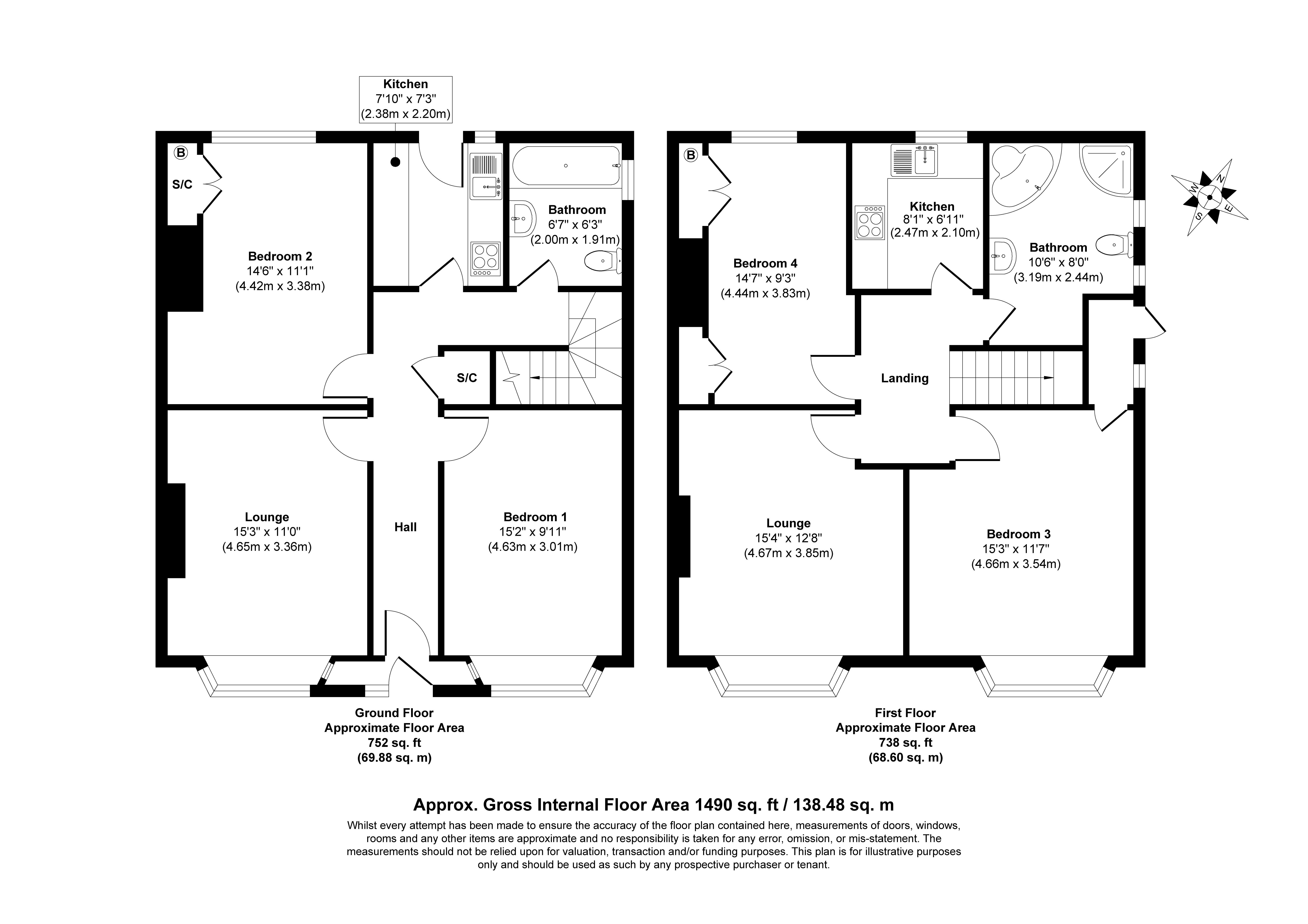 First Floor: Entrance Hall, Lounge, Kitchen, Bathroom and 2 Bedrooms