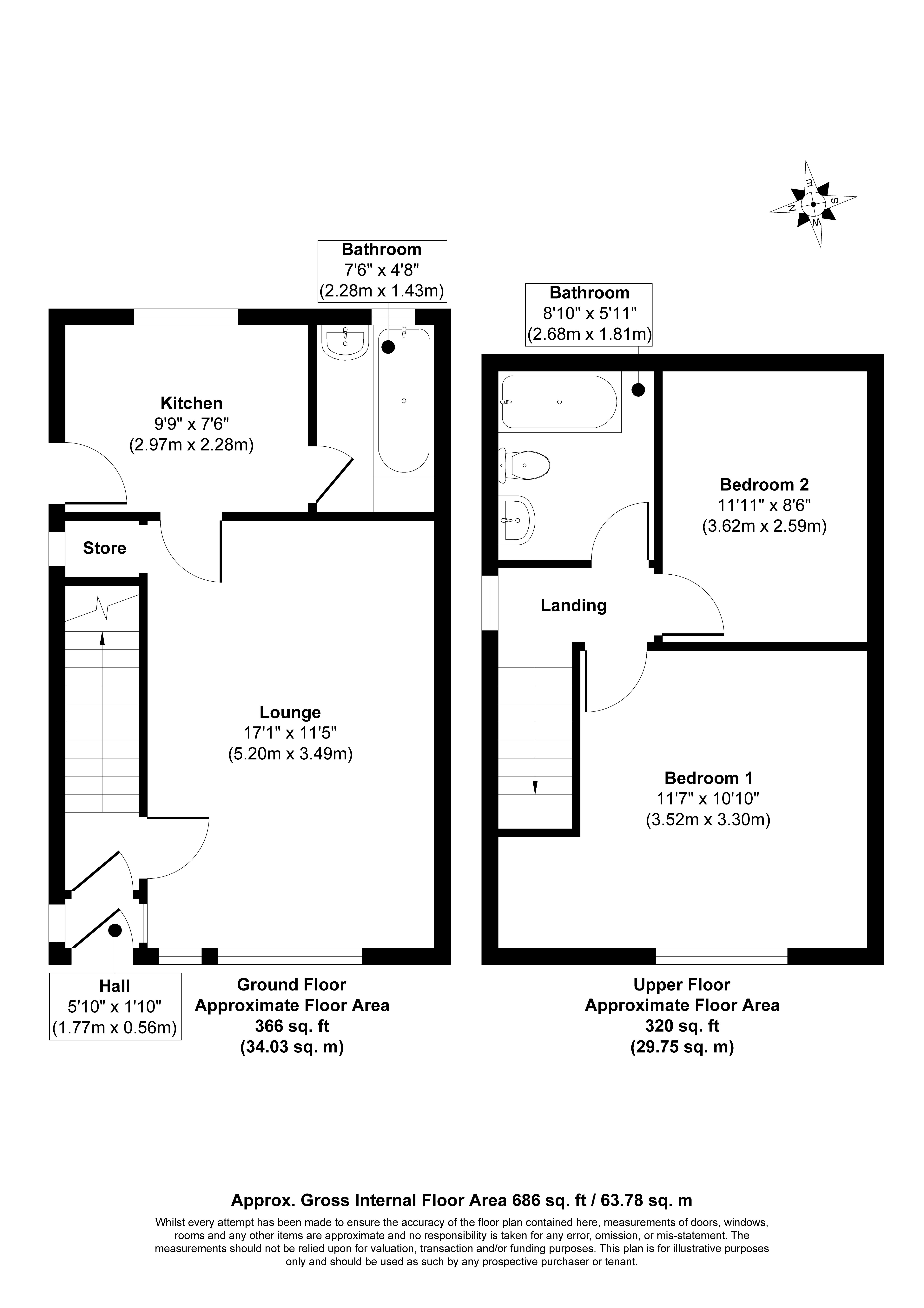 First Floor: Two Bedrooms and Bathroom