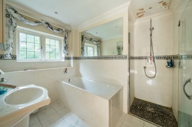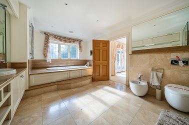 The main house has 5 bedrooms, all with en-suite bathrooms, 5 reception rooms and an extensive lower ground floor with a cinema room and gym area.