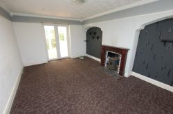 Window to front, radiator panel, fire place, French doors into conservatory.