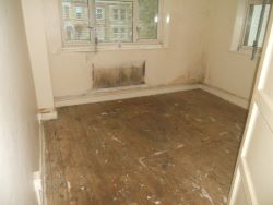 The property comprises a first floor two bedroom flat which is need of extensive refurbishment and has suffered water damage.