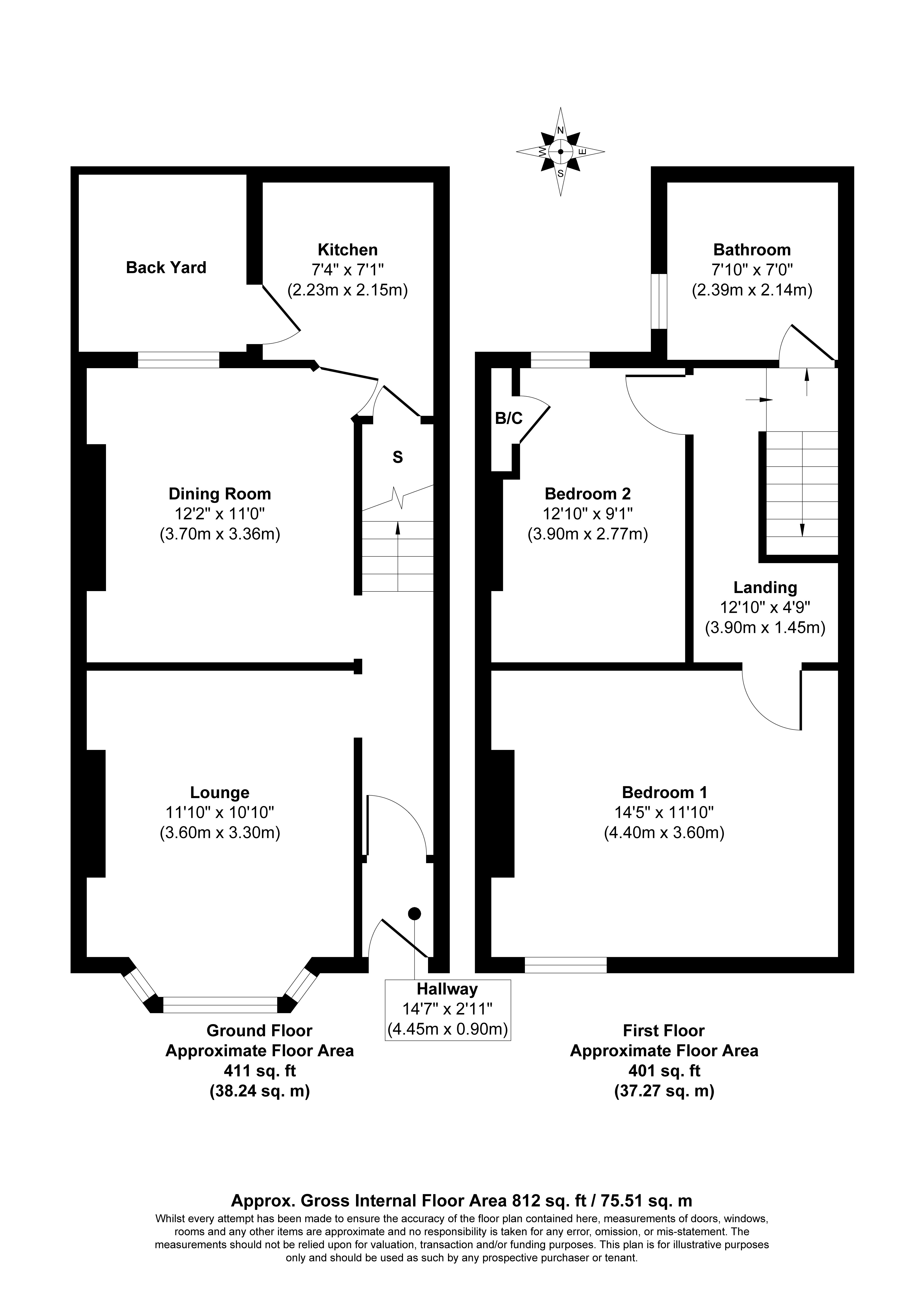 First Floor: Landing, Two Bedrooms and Bathroom/W.C