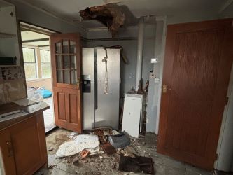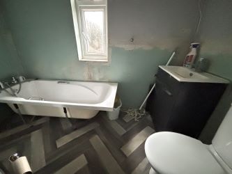 Internally, the ground floor comprises a conservatory/lean to, a kitchen, living room, bathroom and three bedrooms. The first floor is converted attic space providing one additional bedroom. The décor is tired and is a mix of carpet and linoleum floor coverings, with both painted and papered plastered walls. The bathroom has a shower over the bath and is partially tiled and the kitchen has wall and base units and tiled splash backs.