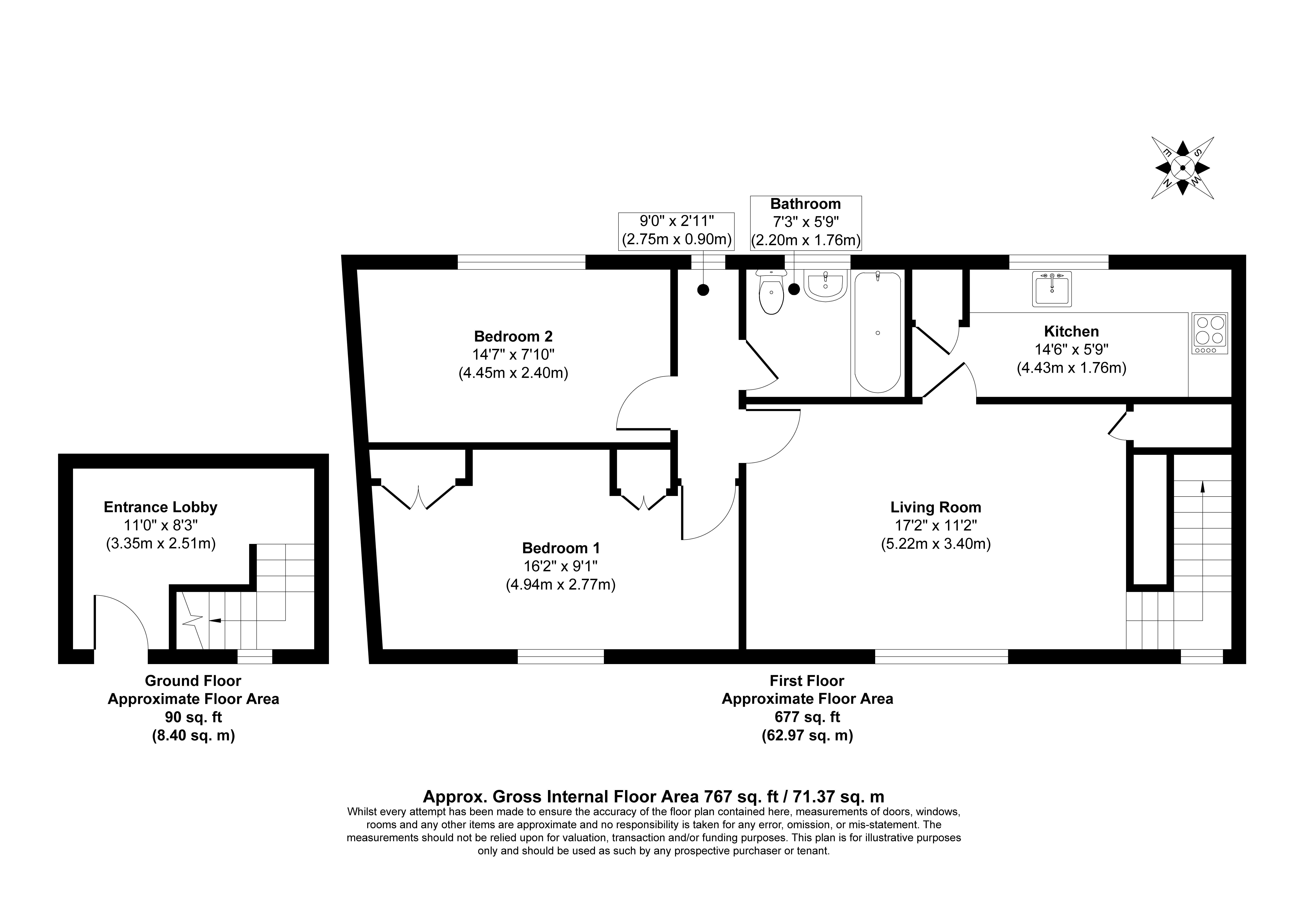Hall, Lounge, Kitchen, Two Bedrooms and Bathroom/W.C