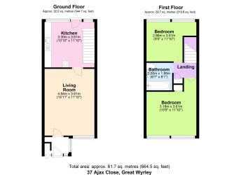First Floor: Two Bedrooms, WC and Bathroom