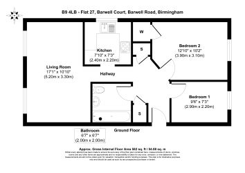 Hall, Living Room, Kitchen, Two Bedrooms and Bathroom/W.C