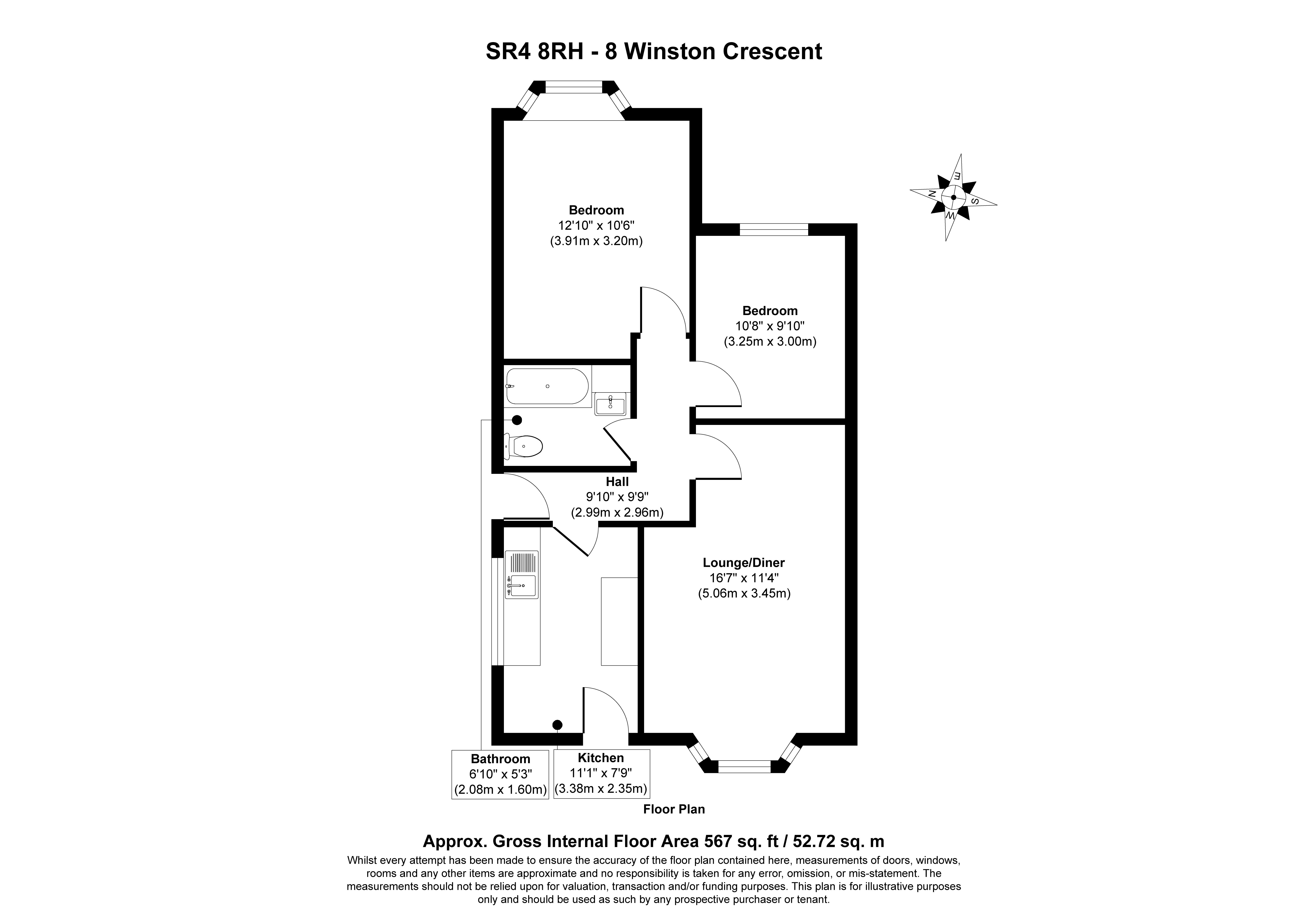 Two Bedrooms, Lounge/Diner, Kitchen, Hall and Bathroom/W.C