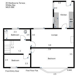 Two bedroom first floor flat within a terrace property in need of modernisation and refurbishment.