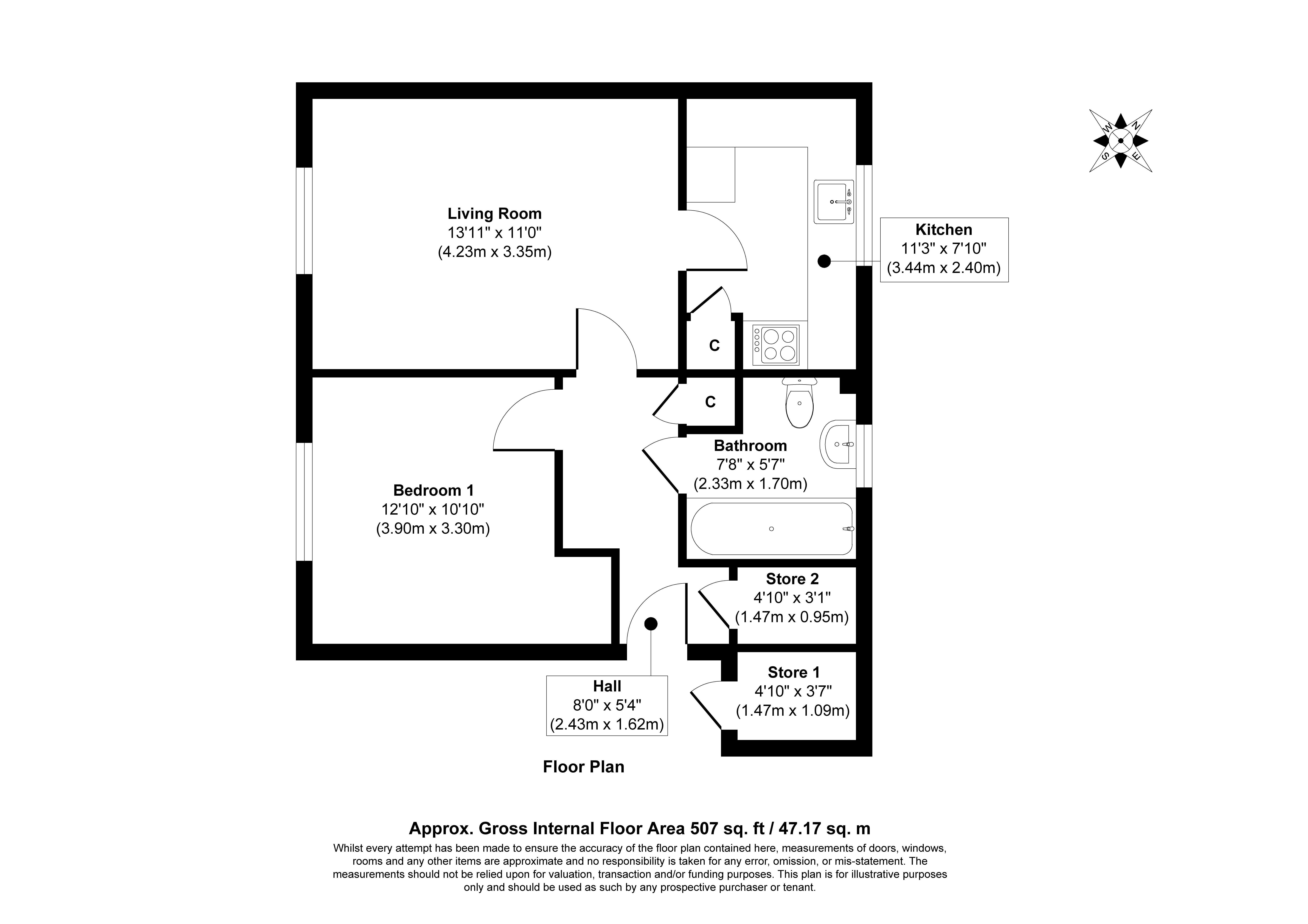 Hall, Living Room, Kitchen, Bedroom and Bathroom/W.C