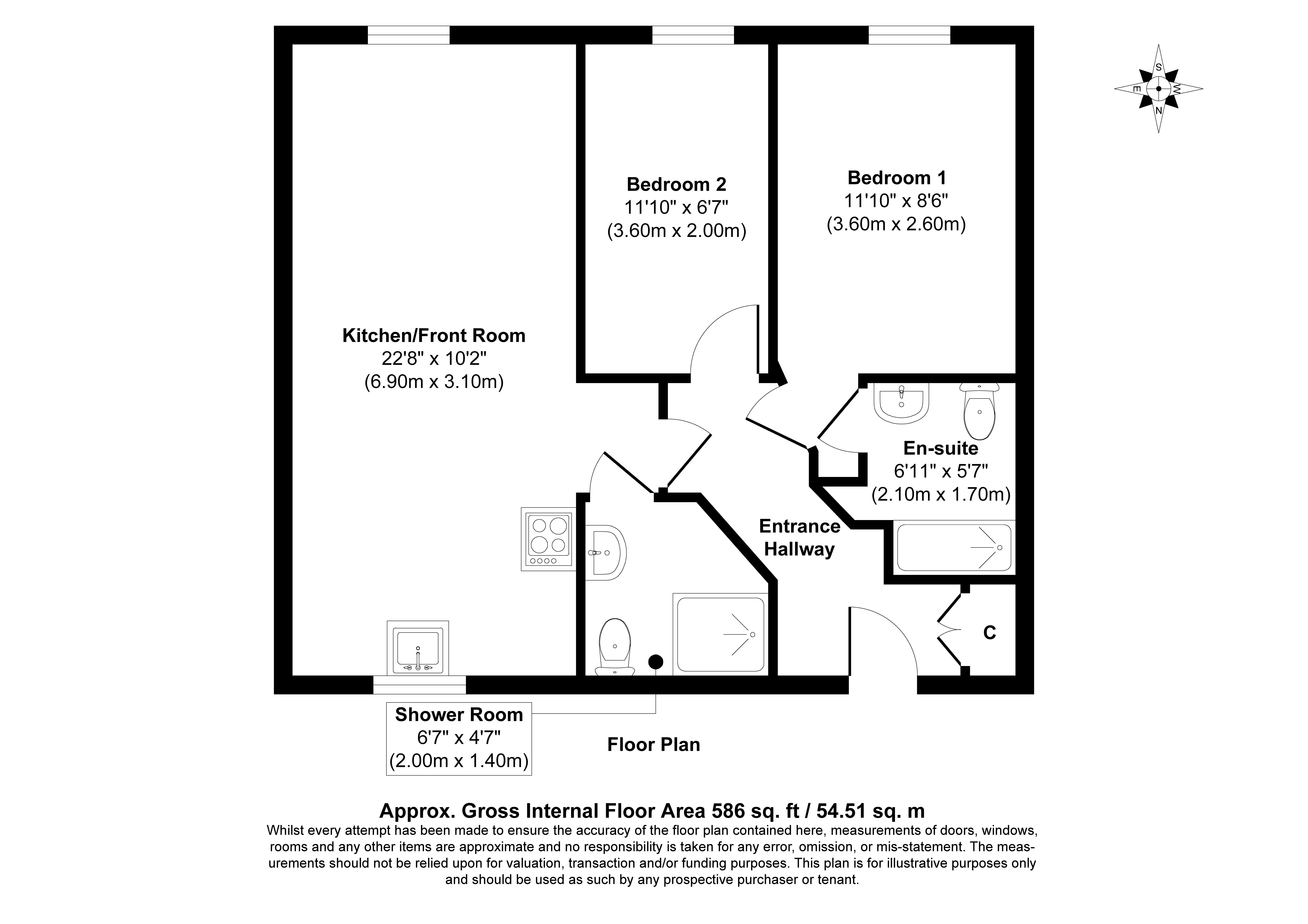 Hallway, Kitchen/Lounge, Bathroom and 2 Bedrooms (1 with Ensuite).
