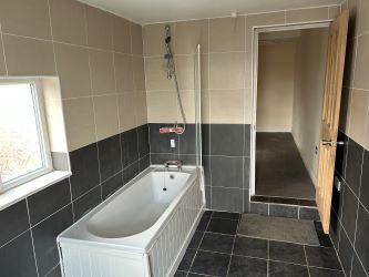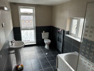 The first floor provides two bedrooms and a bathroom. The bedrooms have carpet floors and painted walls and the bathroom has a WC, sink and shower over the bath and is fully tiled.