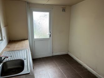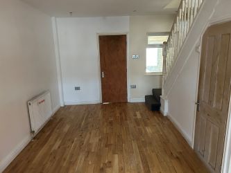 Internally, the ground floor comprises a small sitting room, a larger living/dining area, a kitchen, bathroom and a utility room. The smaller living area has carpet flooring and painted walls and the larger living area has laminate flooring and painted walls. The kitchen has wall and base units and has tiled splash backs and a tiled floor and the bathroom comprises a WC, sink and shower and has tiled flooring and walls. The utility has base units and tiled flooring.
