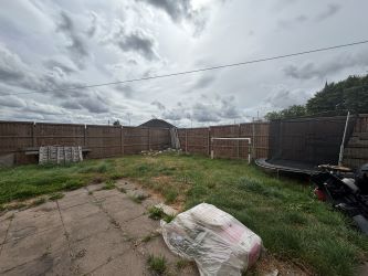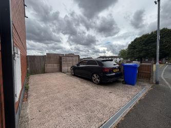 Rear garden and off road parking. Please refer to the title plan - the property title includes the area adjacent to the house and where the black car is shown on the images appears to be outside of the boundary title being sold.
