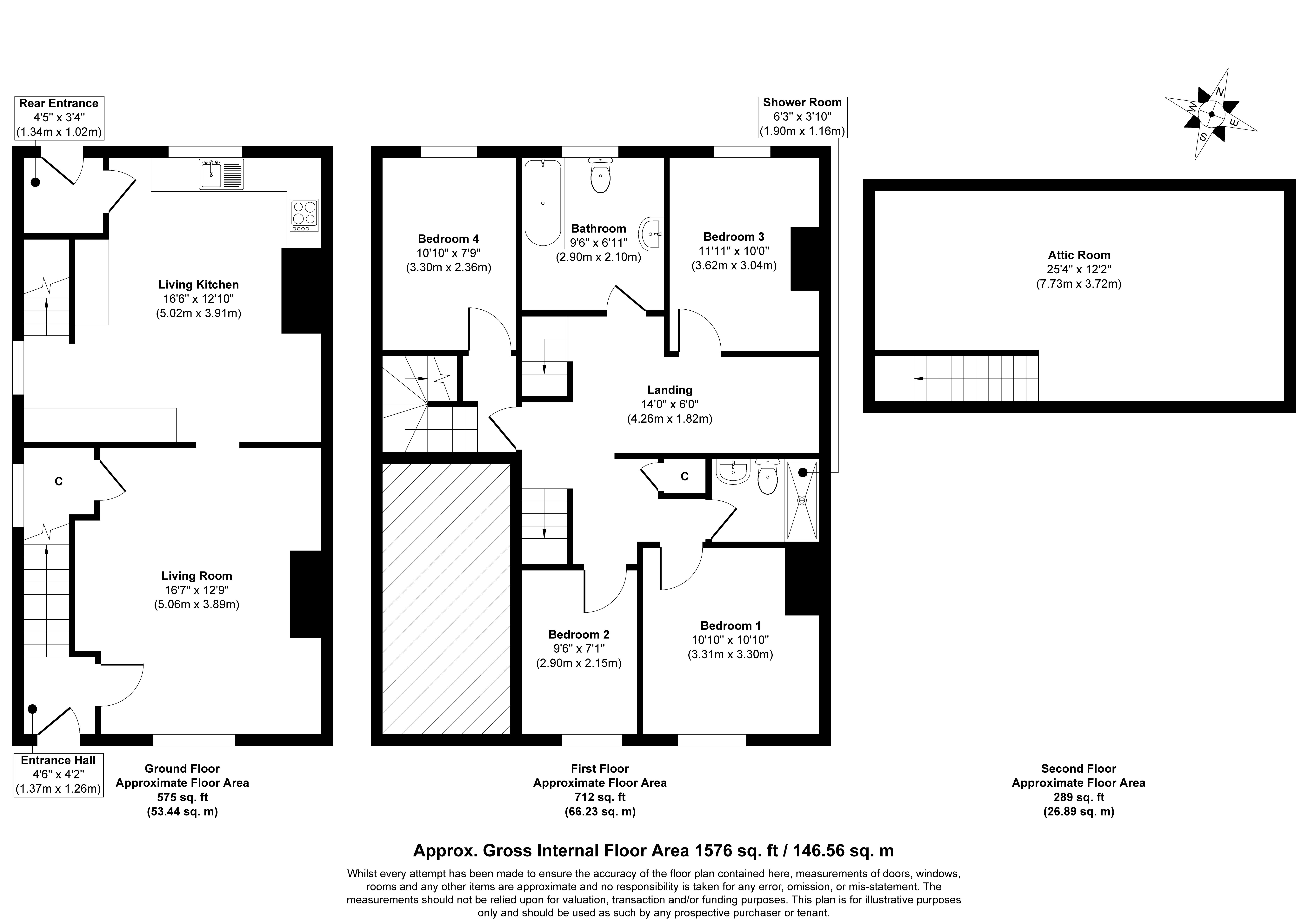 First Floor: Four Bedrooms, Bathroom/W.C and Shower Room/W.C