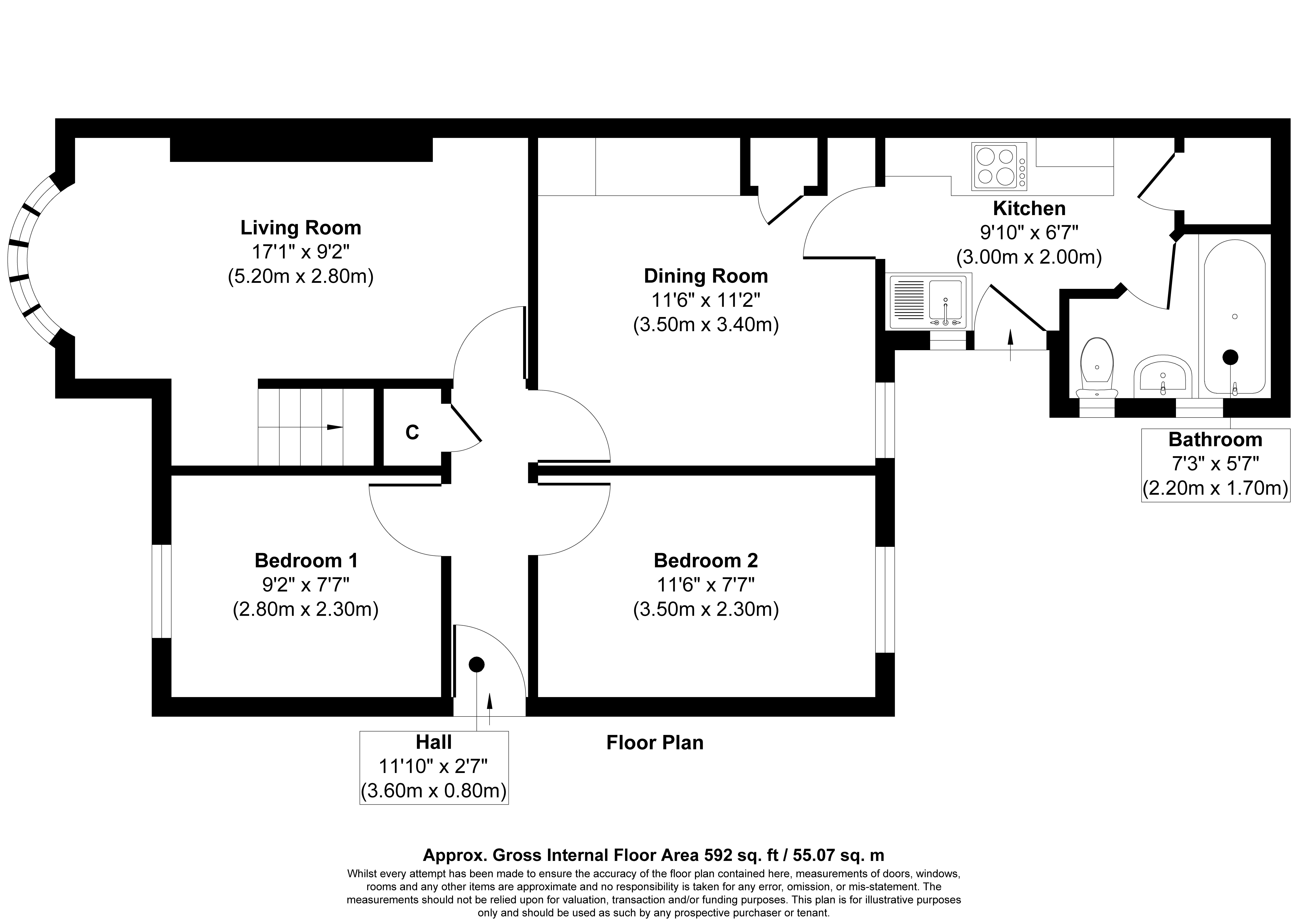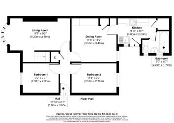 Hall, Living Room/Dining Room, Kitchen, Two Bedrooms and Bathroom/W.C