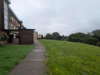 Communal gardens and parking space.