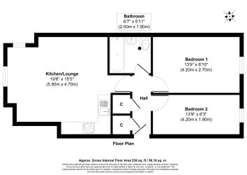 Hall, Open Plan Kitchen/Living Room, Two Bedrooms and Bathroom/W.C
