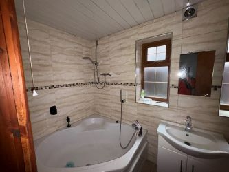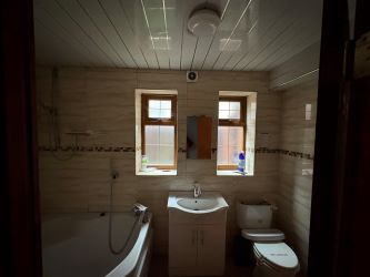 The ground floor has an entrance hall, 2 bedrooms, bathroom and a kitchen/sitting room, the first floor has a landing, a further 3 bedrooms and a shower room and the attic has 2 bedrooms and a shower room. In addition, there is a single storey detached outbuilding in the rear garden, used as a lounge area.