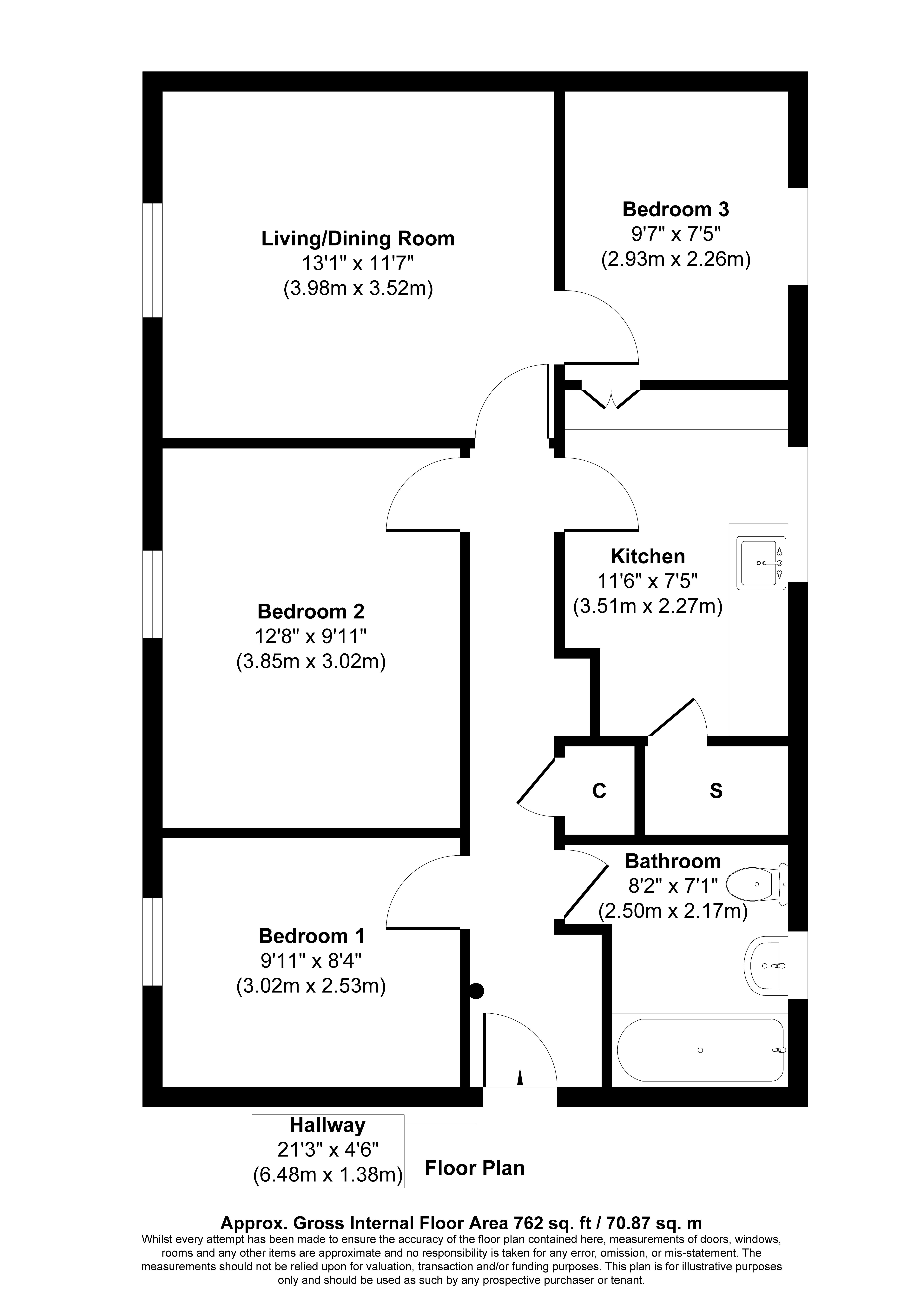 Hall, Living Room, Kitchen, Three Bedrooms and Bathroom/W.C