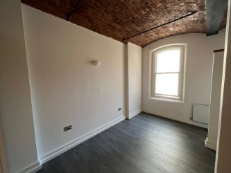*VIDEO TOUR AVAILABLE UPON REQUEST* Situated within a converted period building on the first floor, the apartment comprises the property comprises hall, bathroom and open plan kitchen/lounge and a bedroom with predominantly laminate floors and plastered and painted walls with exposed brick and vaulted ceilings to the open plan kitchen/lounge and bedroom. The bathroom comprises shower over bath, WC, and sink with linoleum floor and tiled walls, and the kitchen includes a number of fitted units and cupboards, but the oven/hob and other appliances have been removed.