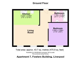 Entrance hall, bathroom, open plan kitchen/lounge and a bedroom area -43.70 sq.m (417 sq ft)