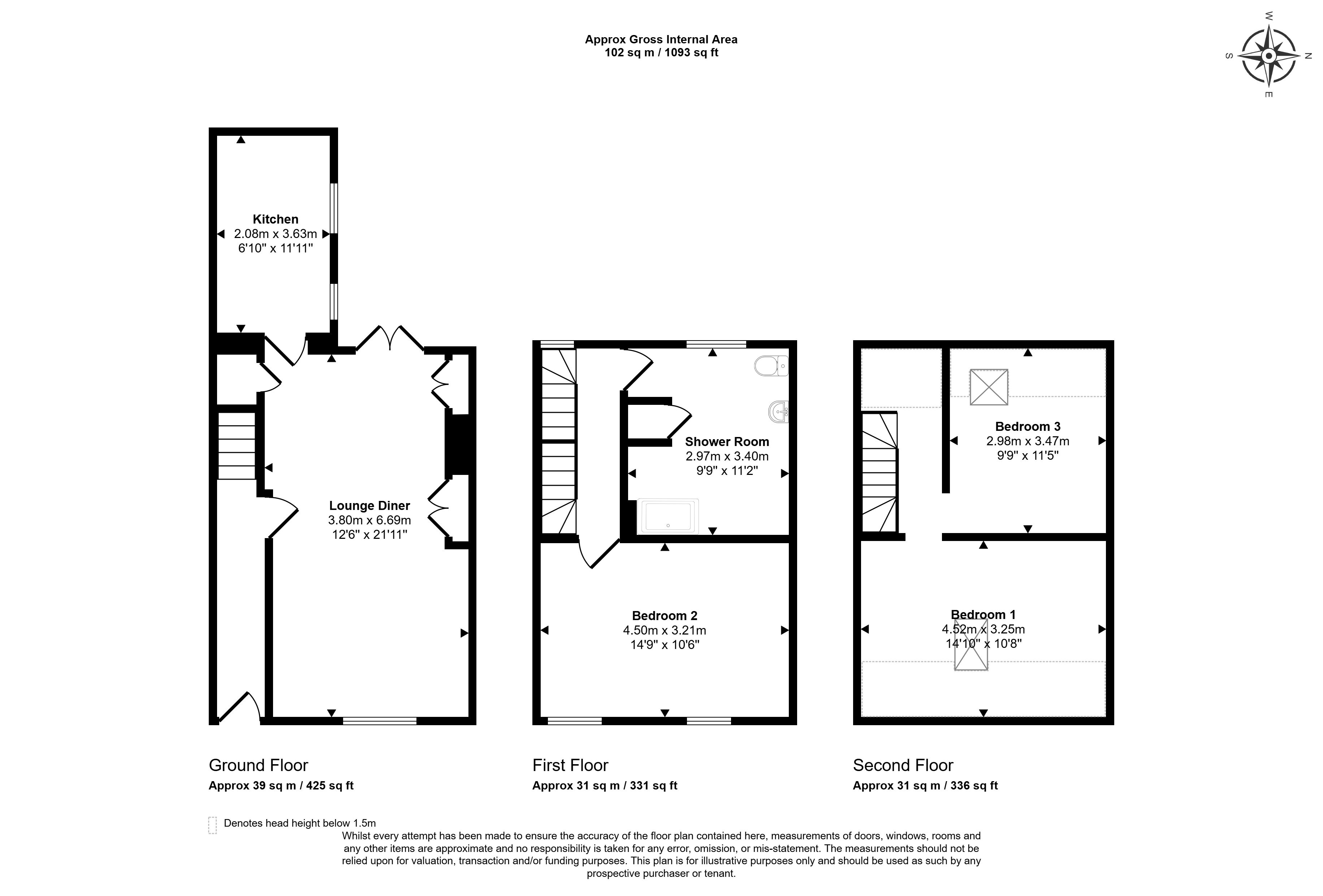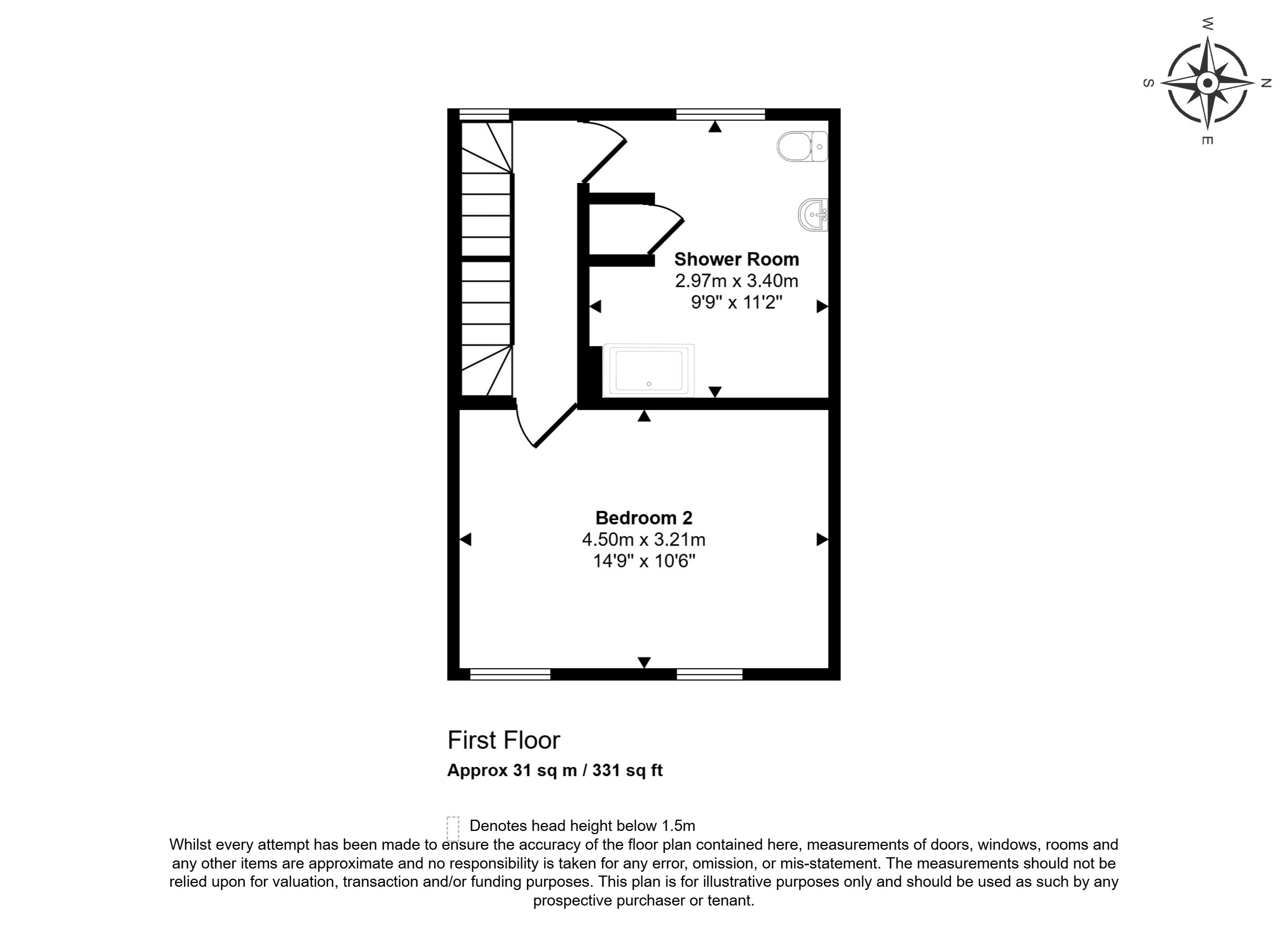 First Floor: Bedroom and Shower Room/W.C