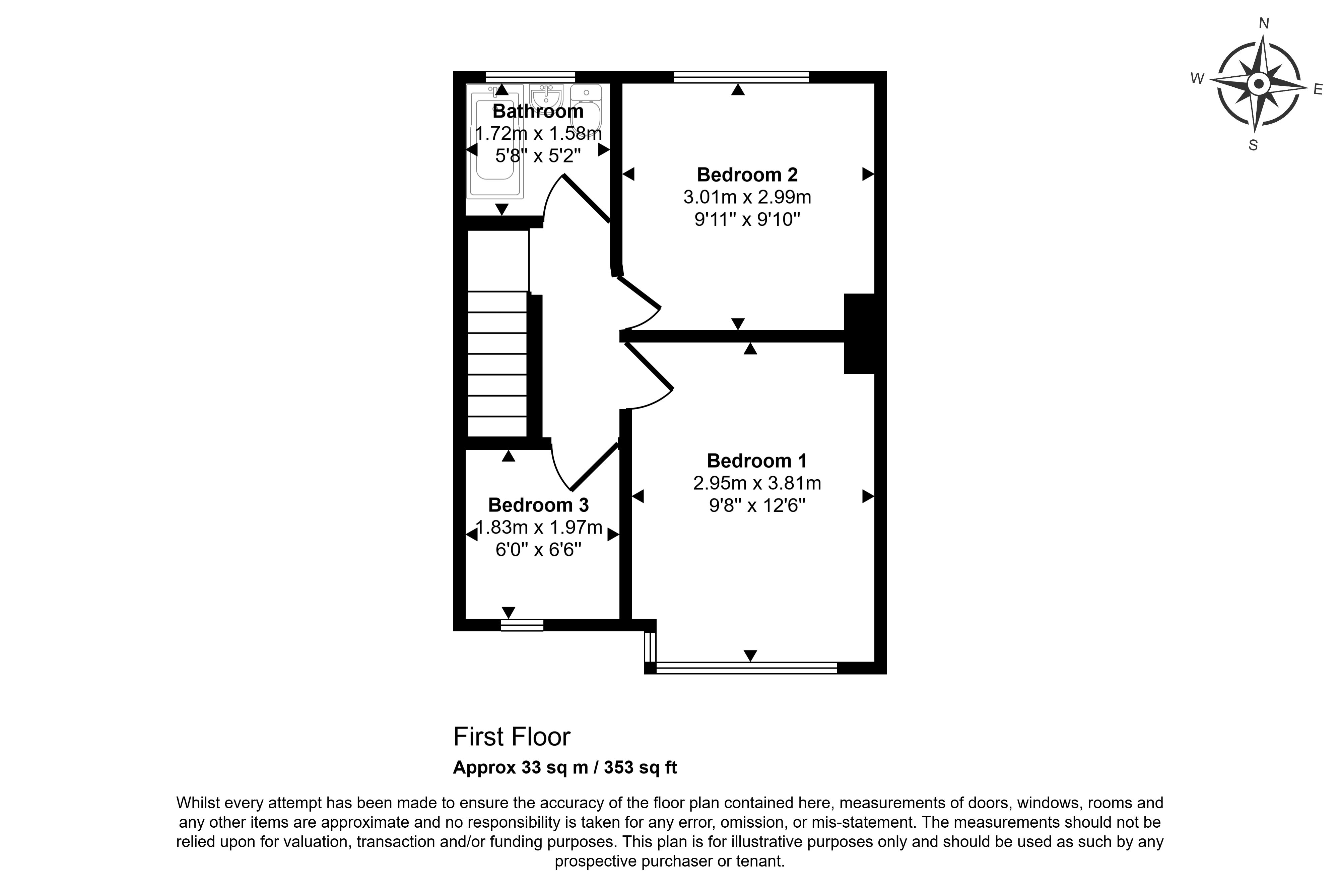 First Floor: Landing, Three Bedrooms and Bathroom/W.C