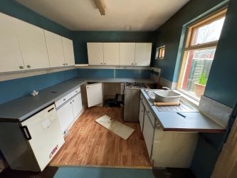 The property comprises a vacant former caretakers house that now requires renovation and updating. It benefits from a relatively large garden. The entrance hall leads to two reception rooms, with a kitchen at the rear. At first floor there is a landing, three bedrooms and a bathroom.