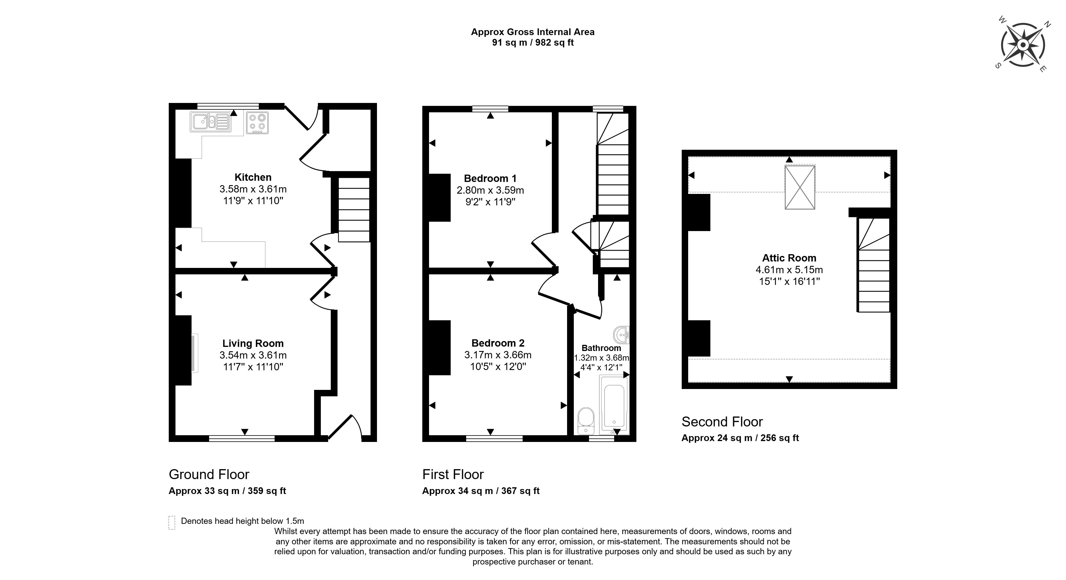 First Floor: Two Bedrooms and Bathroom/W.C