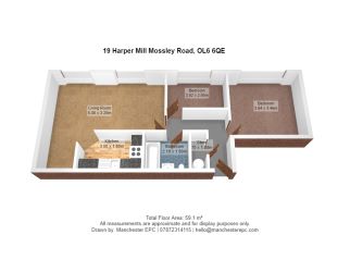 The property comprises a two bedroom first floor apartment, within a mill conversion, benefiting from an open plan living area with a feature brick wall, a modern kitchen and views over the communal garden. Heating is by way of electric wall heaters and the windows are uPVC doubled glazed units.