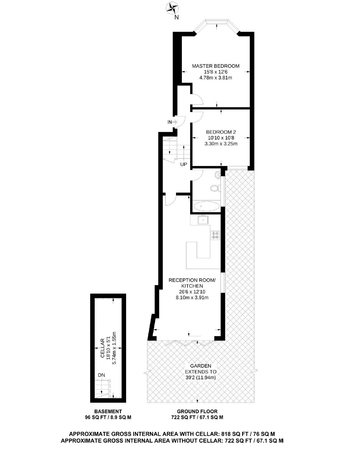 *VIDEO TOUR AVAILABLE ON REQUEST* The property comprises a ground floor flat, which benefits from two double bedrooms, an open plan kitchen/reception room and a relatively large rear garden. In addition there is cellar storage. The accommodation extends to 76 sq. m (818 sq. ft) including the cellar of 96 sq. ft (8.9 sq. m). Refurbishment is required throughout.