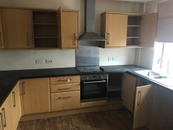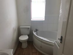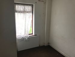 Vacant two bedroom end terrace property in need of refurbishment, with garage on separate site.