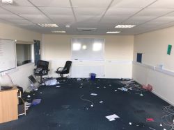 The property comprises two units that are currently interlinked, with access from one to another through personnel doors. Unit 12 has been extended, with the provision of a first floor and provides office accommodation throughout. Unit 5 provides office accommodation to part and the remainder is industrial/workshop space. The units are all built around a steel portal frame construction, with full height block internal walls separating the units. The roof and walls are clad with insulated profile metal sheeting and the front and rear elevations have reconstituted stone facings to approximately six feet. The units have approximately 5m high access doors and 6m eaves.