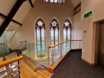 The property comprises a former church that has been subject to a high quality conversion (we understand from the vendor at a cost of circa £1.6m) to provide a conference and office centre. The transformation has resulted in a unique building, with accommodation over three floors, benefitting from a grand entrance that showcases the high ceilings and mezzanine floors. The layout provides a mixture of open plan and private rooms, with many period features retained, whilst providing a modern and contemporary environment. Facilities include a lift, two kitchens and a barrier controlled car park.
