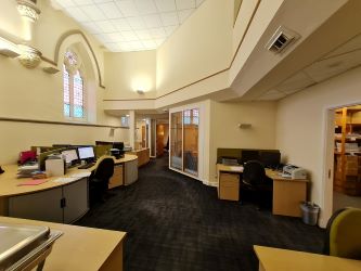 The property comprises a former church that has been subject to a high quality conversion (we understand from the vendor at a cost of circa £1.6m) to provide a conference and office centre. The transformation has resulted in a unique building, with accommodation over three floors, benefitting from a grand entrance that showcases the high ceilings and mezzanine floors. The layout provides a mixture of open plan and private rooms, with many period features retained, whilst providing a modern and contemporary environment. Facilities include a lift, two kitchens and a barrier controlled car park.