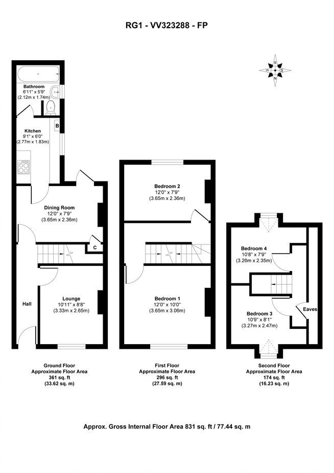 Ground Floor: Hall, Two Reception Rooms, Kitchen and Bathroom
