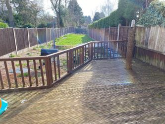 Front garden and driveway all block paved, in a herringbone pattern. Rear garden, which is relatively long and laid to lawn, with a timber decking area adjacent to the house.