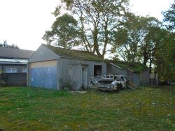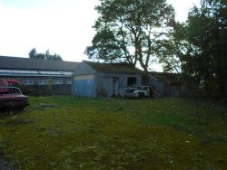 There is a single storey garage at the rear and an outbuilding behind that, with a driveway to one side and former gardens front and rear. Beyond what was the boundary of the garden is a further plot of land.