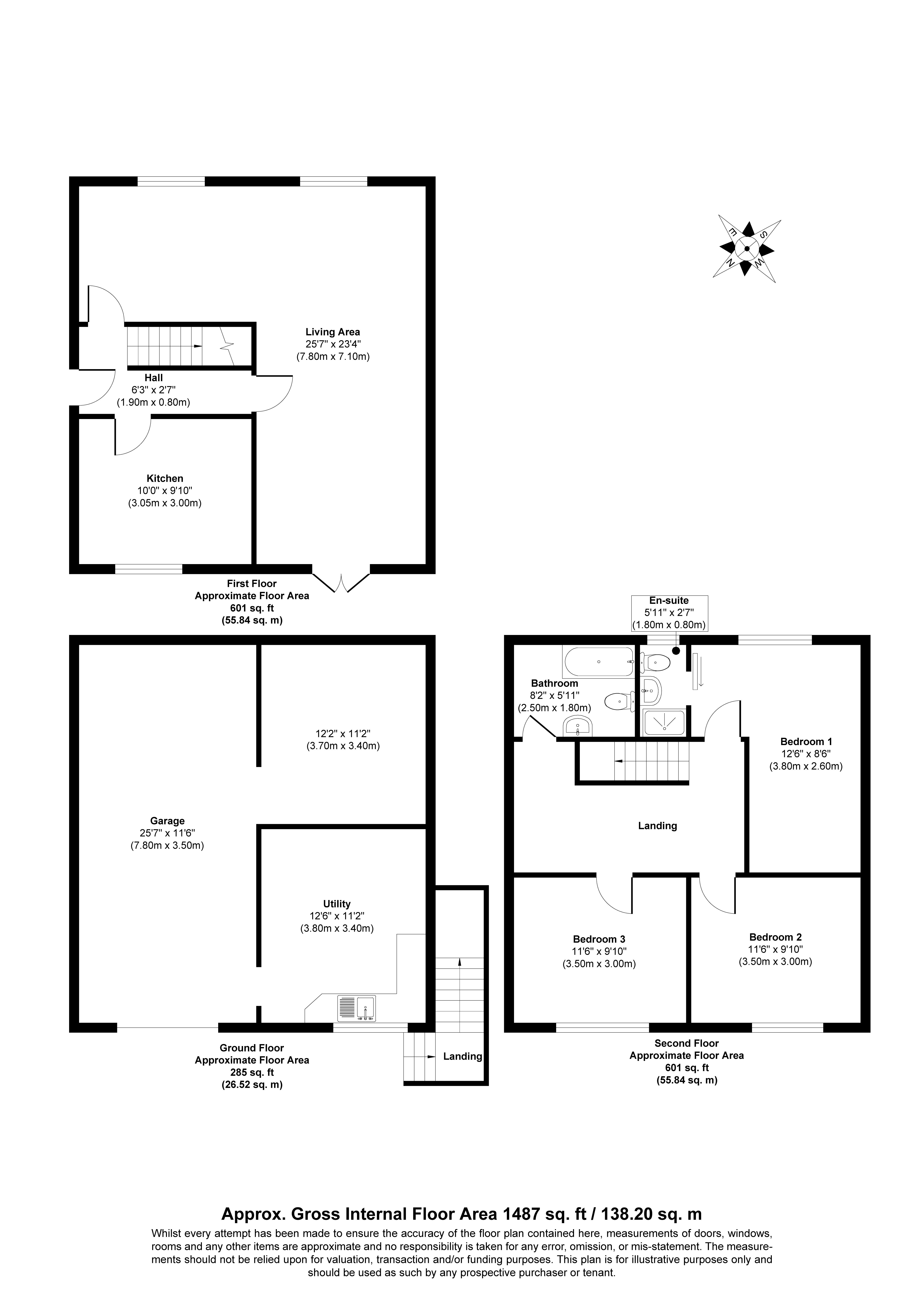 Second Floor: Three Bedrooms and Bathroom/W.C