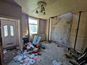 The property has been undergoing renovation with internal supporting walls having been removed. It is understood from historic sales details that the property comprised a lounge, kitchen, bathroom and two bedrooms.