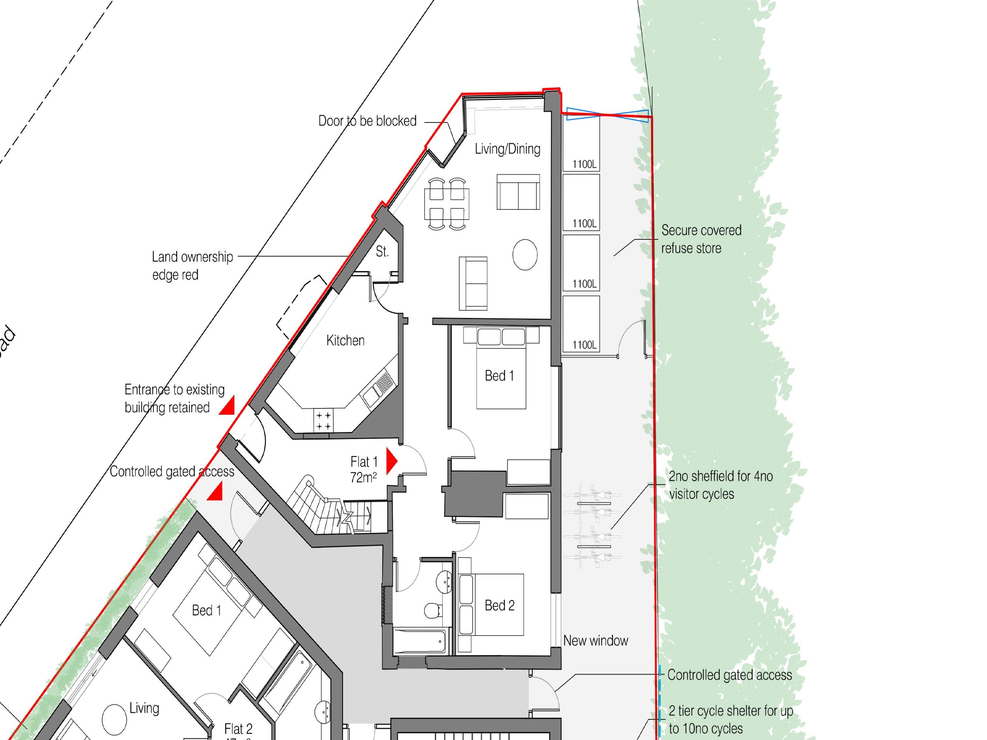 The building has planning permission to create two 2 bedroom apartments, one on each floor and construction has been started.
